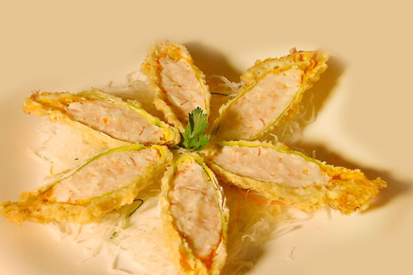 Fiori di zucca con tartare di gambero*