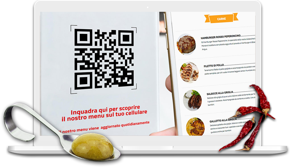 l'utente sarà facilitato nella lettura e potrà accedere facilmente al menu sia fuori che quando sarà al ristorante, grazie al pratico QR code appositamente messo a sua disposizione all'ingresso o sul tavolo.