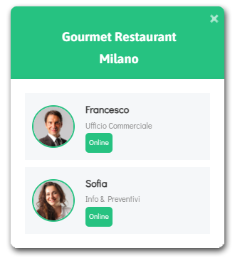Puoi aggiungere più account dei tuoi impiegati in una casella WhatsApp da visualizzare. Il tuo cliente può scegliere con chi desidera chattare, e sa esattamente con chi sta conversando.